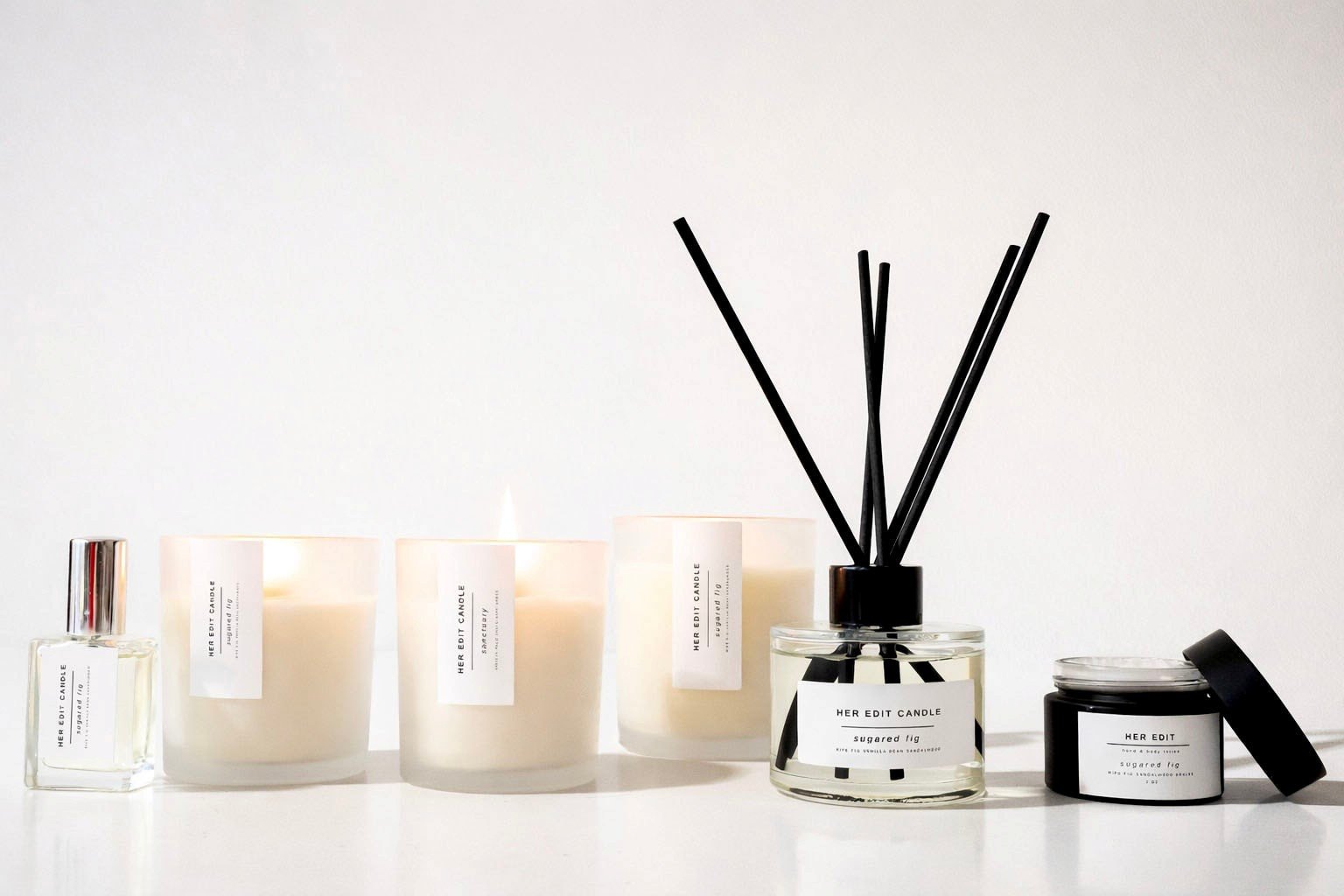 Lotion is offered in select Her Edit scents, extending the experience beyond the candle. Familiar, comforting, and quietly indulgent.