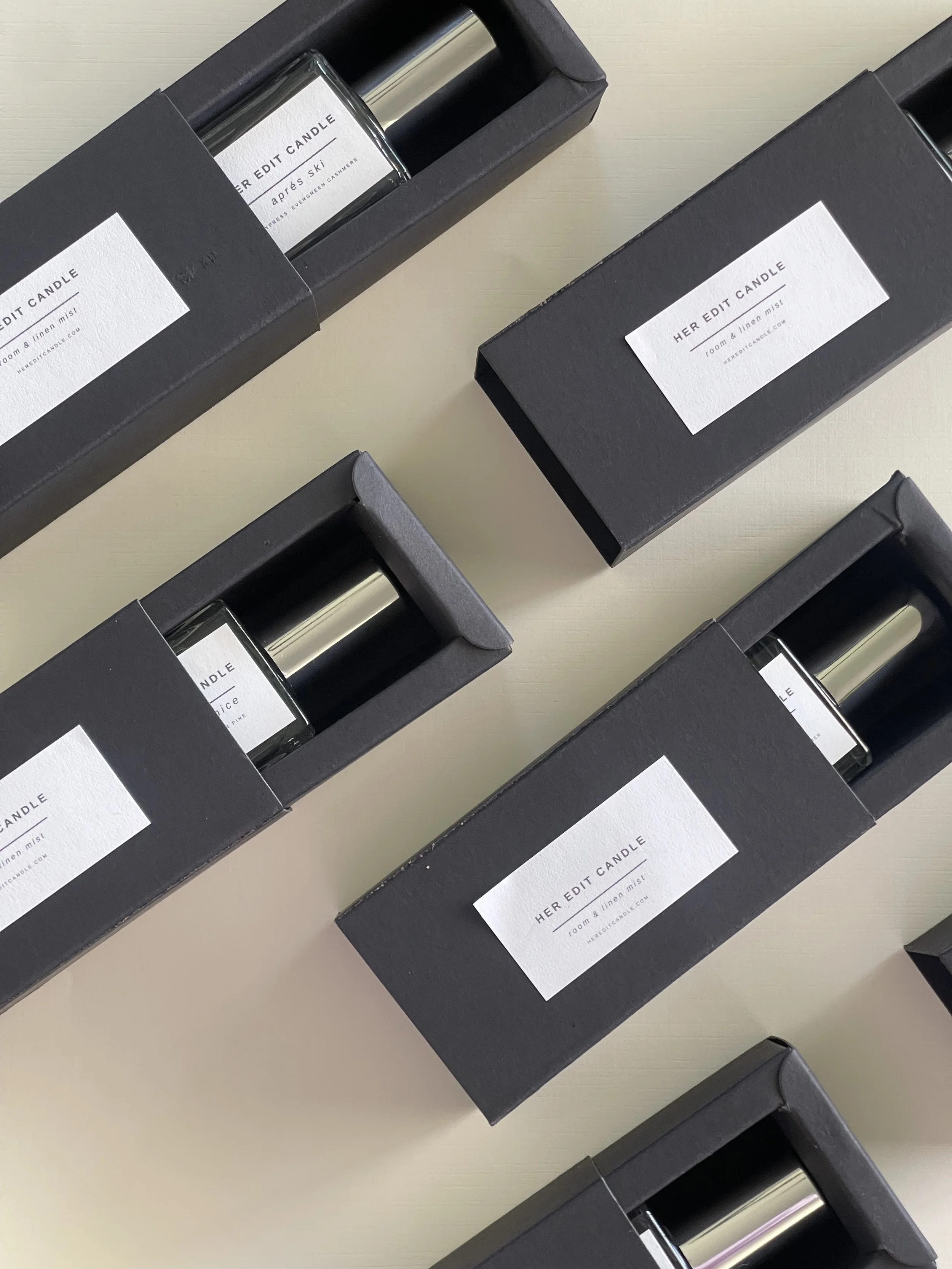her edit candle Shop Categories: All Holiday Gifting Candles Diffusers Room Sprays Signature Limited Drop All | Holiday Gifting | Candles | Diffusers | Room Sprays | Signature | Limited Drop | Sugared Fig Candle $28.00 Après Ski: Limited Winter Drop (8 oz) $28.00 Naughty & Nice: Limited Winter Drop (8 oz) $28.00 Holiday Trio Gift Set $60.00 Mini Candle Set of 6 $90.00 Figment $28.00 Velour Tobacco $28.00 Sanctuary $28.00 Sanctuary Room & Linen Spray-Travel Size $10.00 Après Room & Linen Spray-Travel Size $10.00 Naughty & Nice Room & Linen Spray-Travel Size $10.00 Velour Tobacco Room & Linen Spray-Travel Size $10.00 Sugared Fig Room & Linen Spray-Travel Size $10.00 Figment Room & Linen Spray-Travel Size $10.00 Clean Slate Room & Linen Spray-Travel Size $10.00 Après Ski Diffuser $20.00 Naughty & Nice Diffuser $20.00 Sanctuary Diffuser $20.00 Sugared Fig Diffuser $20.00 Clean Slate Diffuser $20.00